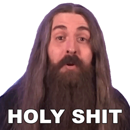 Samus Paulicelli reacts with wide eyes and an open mouth, exclaiming 'Holy Shit' in this expressive sticker.