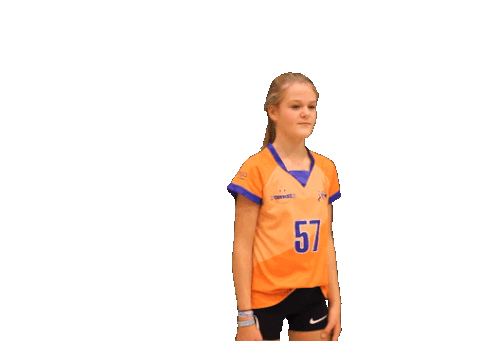 A young girl from Holyoke Belfeld's Meisjes B2 team performs a volleyball pass during a game, demonstrating her skill.