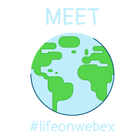 An animated globe with rotating video call and chat icons, promoting online meetings and collaboration for home school and remote work.