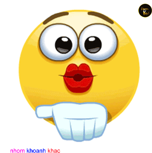 Animated sticker featuring a yellow emoji blowing a kiss, with the Vietnamese text 'nhom khoanh khac' (group of moments).