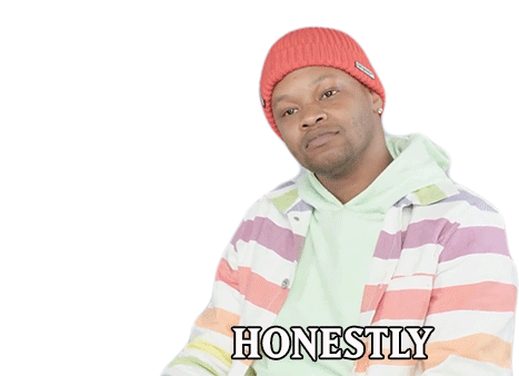 Bj The Chicago Kid, wearing a red beanie and striped jacket, looks at the camera and says 'Honestly' with a thoughtful expression.