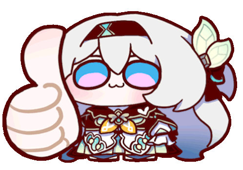 Honka I Hoyolab sticker featuring a chibi Furina with blue-pink sunglasses and a wide smile, from Genshin Impact/Honkai Star Rail.