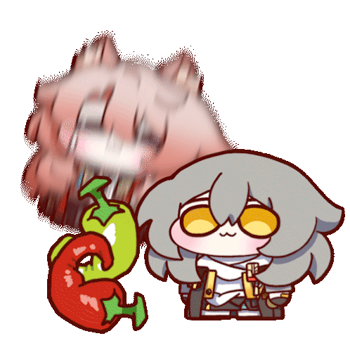 A Honkai Star Rail Hoyolab sticker featuring a character with peppers, while another character reacts to the spice.