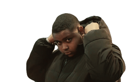 Deno, a young boy, pulls the hood of his black puffer jacket over his head, looking directly at the viewer.