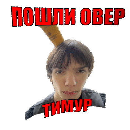 Timur with a bottle on his head, looking serious, with Russian text 'Let's go to Overwatch' and his name.