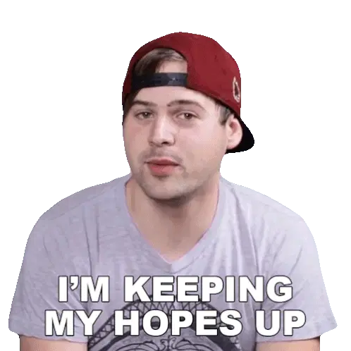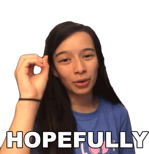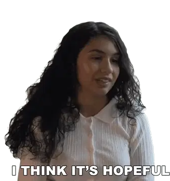 Hannah Fawcett expresses optimism by signing 'hopefully' with a clear, positive gesture and a warm smile.