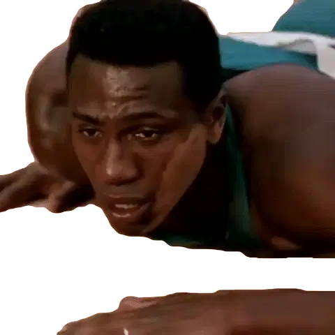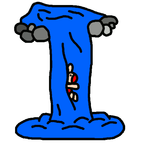 A small character struggles to climb a powerful blue waterfall, embodying a hopeless yet persistent effort to keep trying.