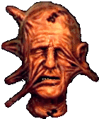 Close-up of a man's head with a grotesque, scary face, perfect for a horror-themed reaction.