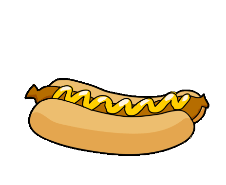 A hot dog with mustard wiggles playfully before rapidly disappearing in a burst of yellow lines.