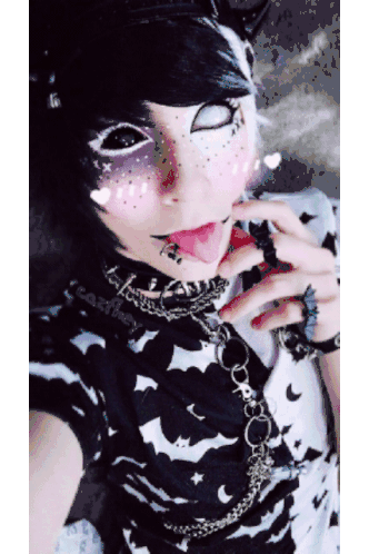 A compilation of alternative fashion selfies featuring individuals with unique makeup, hair, and accessories like chokers and piercings.