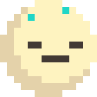 A pixel art character, Maru, resembling a cookie, shows exhaustion and heat with sweat droplets appearing around its tired face.