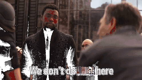Hound The Graceful Stratos, with blood-like markings, delivers the iconic line 'We don't do that here' with a stern expression.