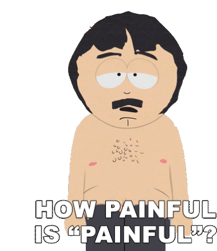 Randy Marsh, shirtless and looking concerned, asks the iconic question, 'How painful is 'painful'?' from South Park.