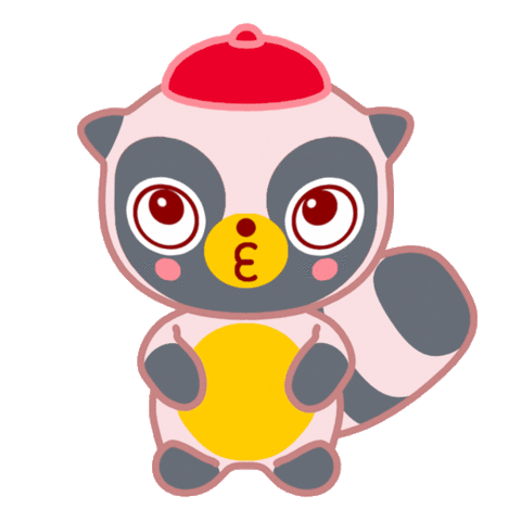 A cute cartoon raccoon-like character with a red hat and a yellow belly looks curious, with a blue question mark floating beside its head.