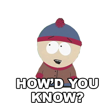 Stan Marsh from South Park looks surprised and asks 'How'd you know?' in this animated sticker.