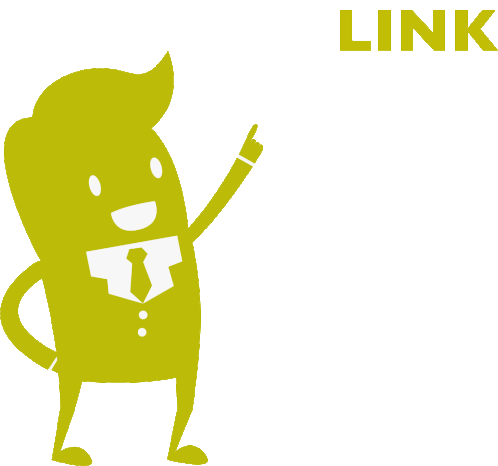 A hand-drawn sticker by Hsp Software Taxo featuring 'Link In Bio' text and a downward-pointing yellow arrow for social media.