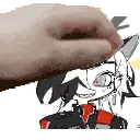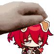 Luka from Honkai: Star Rail, a red-haired chibi character, joyfully sings into a microphone with a fiery aura.