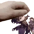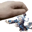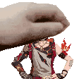 Luka from Honkai Star Rail in pixel art style, with blonde hair and an eye patch, raising a hand energetically.