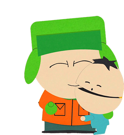 Kyle Broflovski lovingly embraces his younger brother Ike Broflovski in a heartwarming moment from South Park.