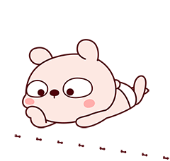 A cute cartoon piggy baby in a diaper lies on its stomach, watching a line of ants crawl by.