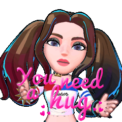 A cartoon girl with pigtails and a 'Joker' shirt extends her arms, offering a comforting hug with the text 'You need a hug'.