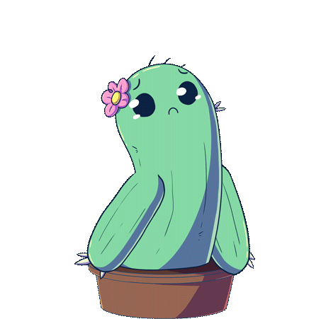 A sad cactus with a flower asks for a hug, then looks dejected. Perfect for expressing a need for comfort or sympathy.