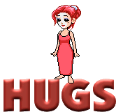 Cynthia Lignon Lou, a pixel art character, blows a kiss and stands over the word 'HUGS' in this animated sticker.