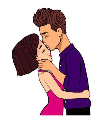 An animated sticker showing a sweet couple in an affectionate embrace, with the man holding the woman's face and waist as they gaze at each other.