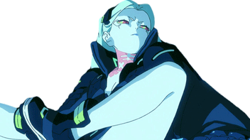 Rebecca from Cyberpunk Edgerunners reacts with a mix of annoyance and shock, her eyes widening in surprise.