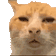 A close-up of the pixelated face of Huhhcat, an orange and white cat, looking confused or unimpressed.