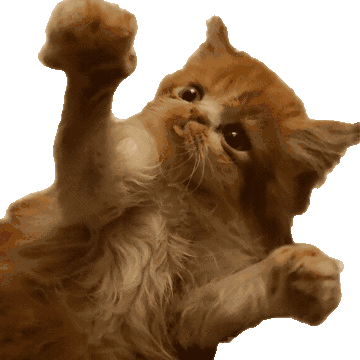a cat is laying on its back with its paw up in the air