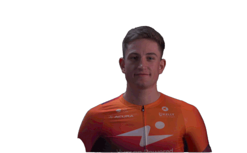 Wessel Krul, the Human Powered Health cyclist, celebrates with raised fists and a big smile.