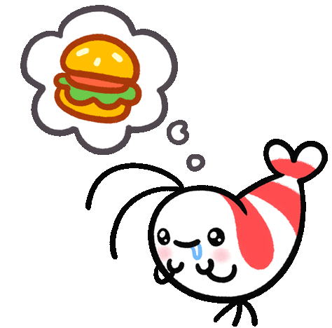 A cute, striped shrimp drools while dreaming of a delicious slice of pizza, showing its intense hunger.