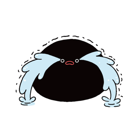 A black blob character cries intensely with large streams of blue tears, conveying deep hurt and remorse.