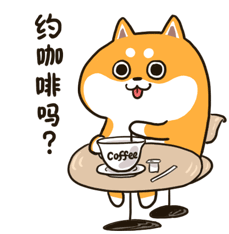 Husky And Shiba character invites for coffee, then reacts with surprise. A cute animated sticker for WeChat.