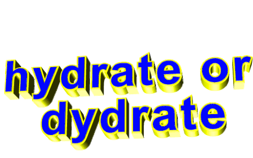 Animated sticker featuring the 3D text 'hydrate or dydrate' in yellow and blue, rotating dynamically.