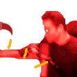 Hasanabi, the streamer, in a red shirt, holding a hyperhammer, referencing Forged In Fire.