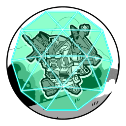 Chibi Hyperion Gundam from Gundam Seed, protected by a glowing, rotating hexagonal energy shield.