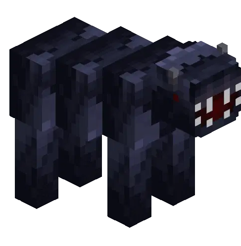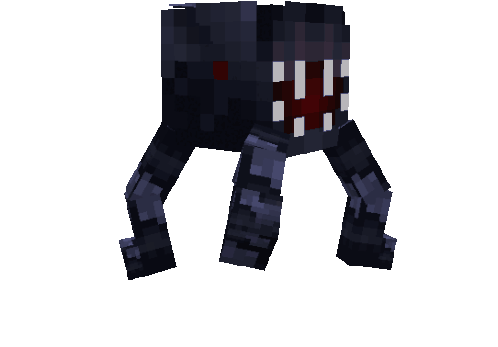 A pixelated Scatha monster from Hypixel Skyblock, featuring a dark, blocky body and a menacing mouth full of sharp teeth.