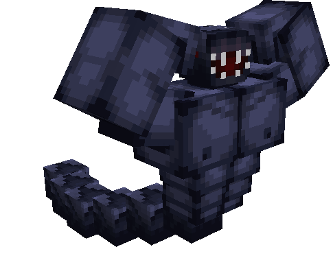 A pixel art animation of the powerful Scatha monster from Hypixel Skyblock, flexing its large, muscular arms.