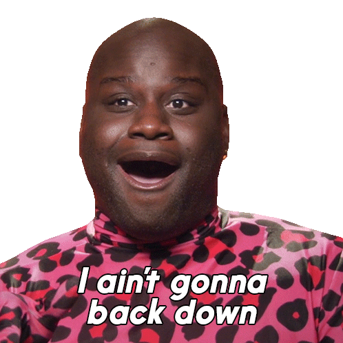 LaLa Ri from RuPaul's Drag Race confidently declares 'I ain't gonna back down' with a determined expression, wearing a vibrant pink leopard print top.