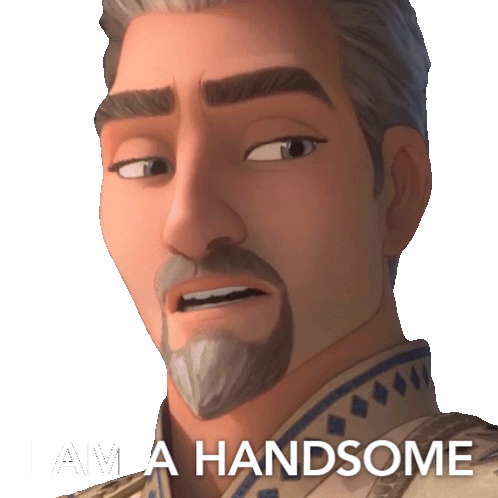 King Magnifico from Disney's Wish proudly declares 'I Am A Handsome King' with a confident smirk. Perfect for expressing self-admiration.