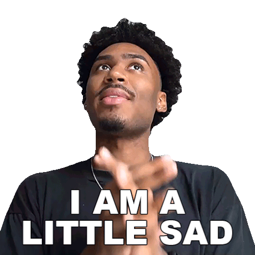 Rumi Robinson expresses sadness with the caption 'I AM A LITTLE SAD', looking thoughtful with clasped hands.