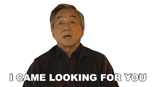 Mr Han from The Karate Kid says "I came looking for you" with the quote displayed on screen.