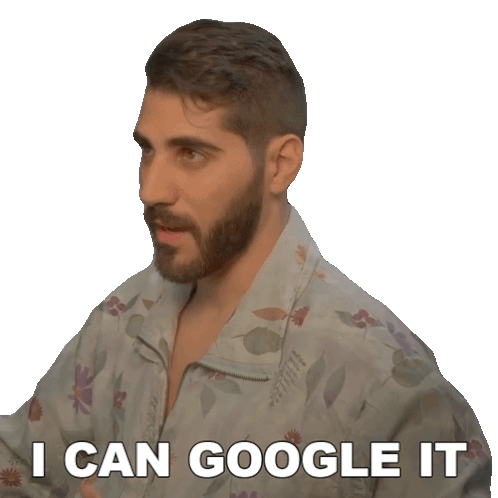 Rudy Ayoub, wearing a floral shirt, confidently states 'I CAN GOOGLE IT', implying self-sufficiency in finding information.
