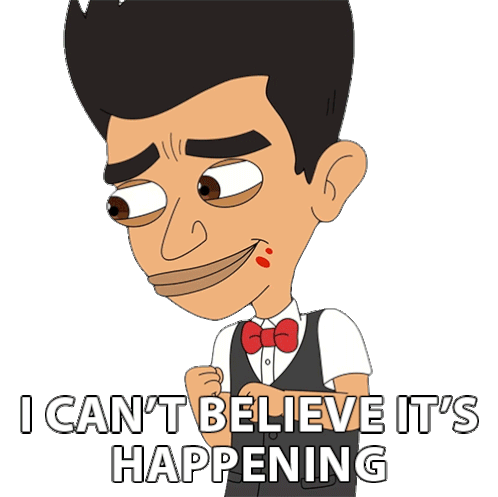 Jay Bilzerian from Big Mouth expresses disbelief and excitement, exclaiming "I Can't Believe It's Happening" with a wide gesture.