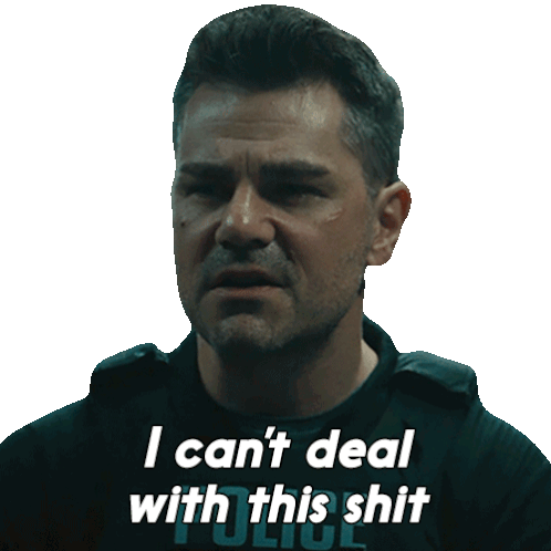 Robert, wearing a police shirt, expresses intense frustration, stating "I can't deal with this shit" in a moment of exasperation.