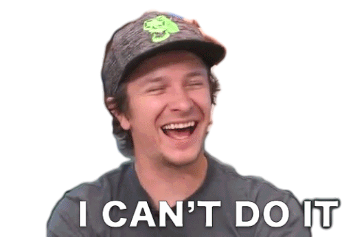 Wren from Corridor Crew laughs hysterically with the caption 'I CAN'T DO IT', expressing humorous defeat.