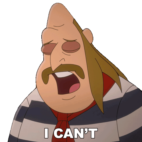 Swooper, a cartoon character, expresses inability with a frustrated and defeated look, saying 'I CAN'T'.
