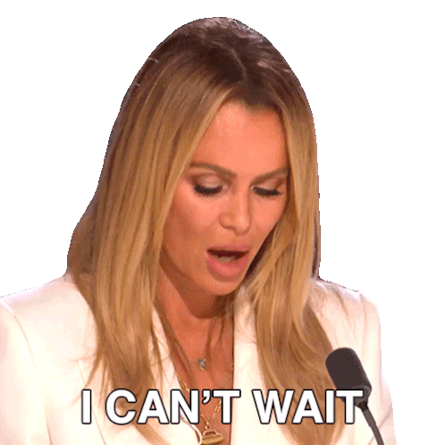 Amanda Holden expresses excitement, saying "I CAN'T WAIT" while speaking into a microphone with anticipation.